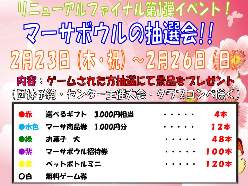 リニューアルファイナル第1弾イベント!     マーサボウルの抽選会!!