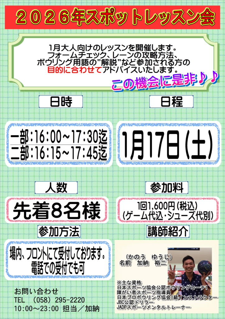 2026年スポットレッスン会!1/17(土)